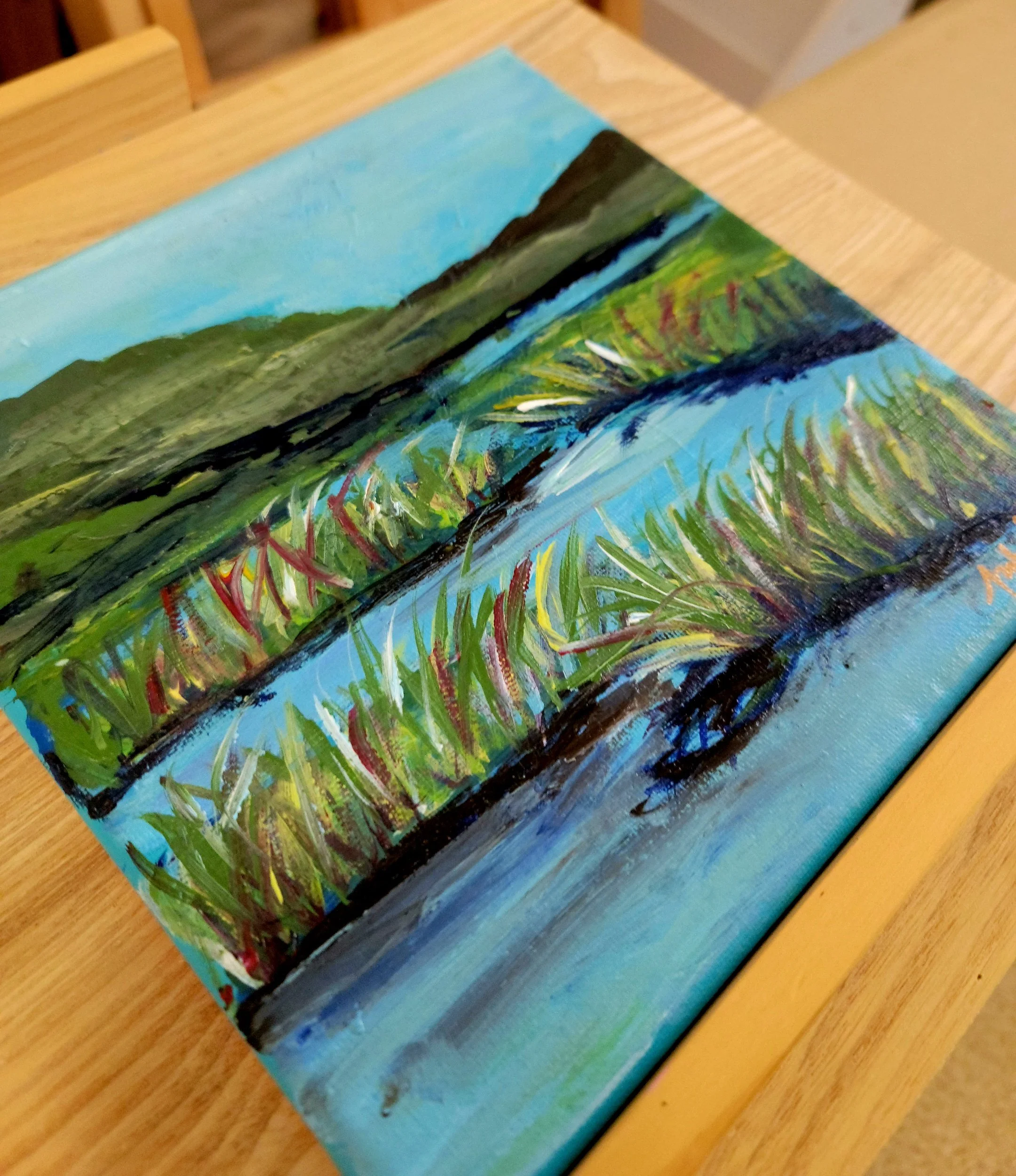 “In the Cordgrass” is an original painting on gallery wrapped canvas.