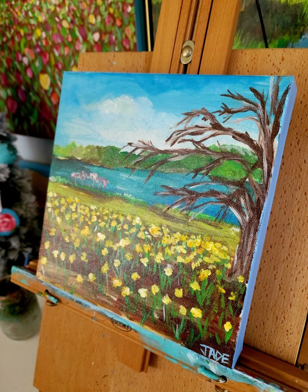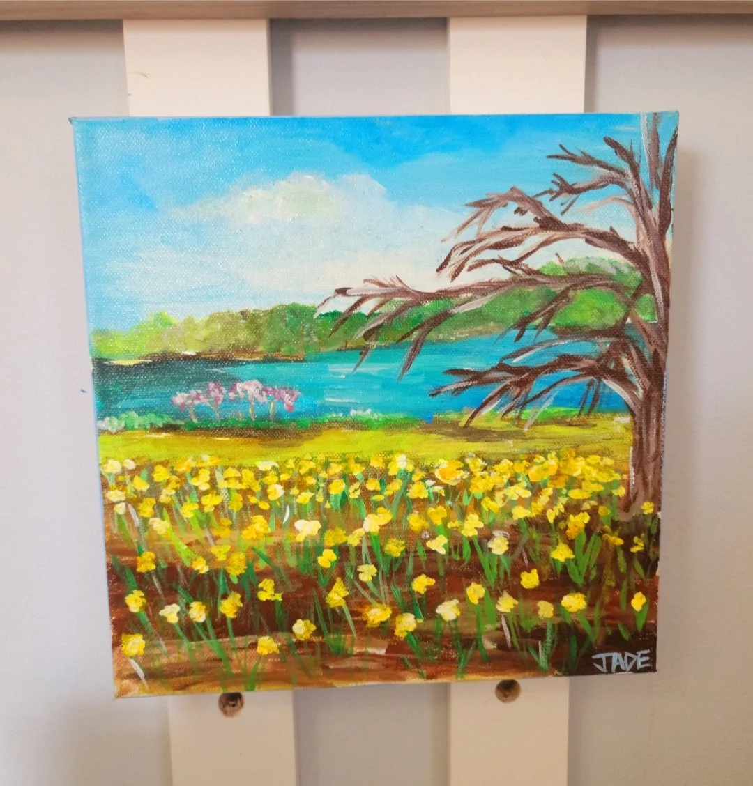 “Daffodils at Overlook” is an original acrylic painting on gallery wrapped canvas.