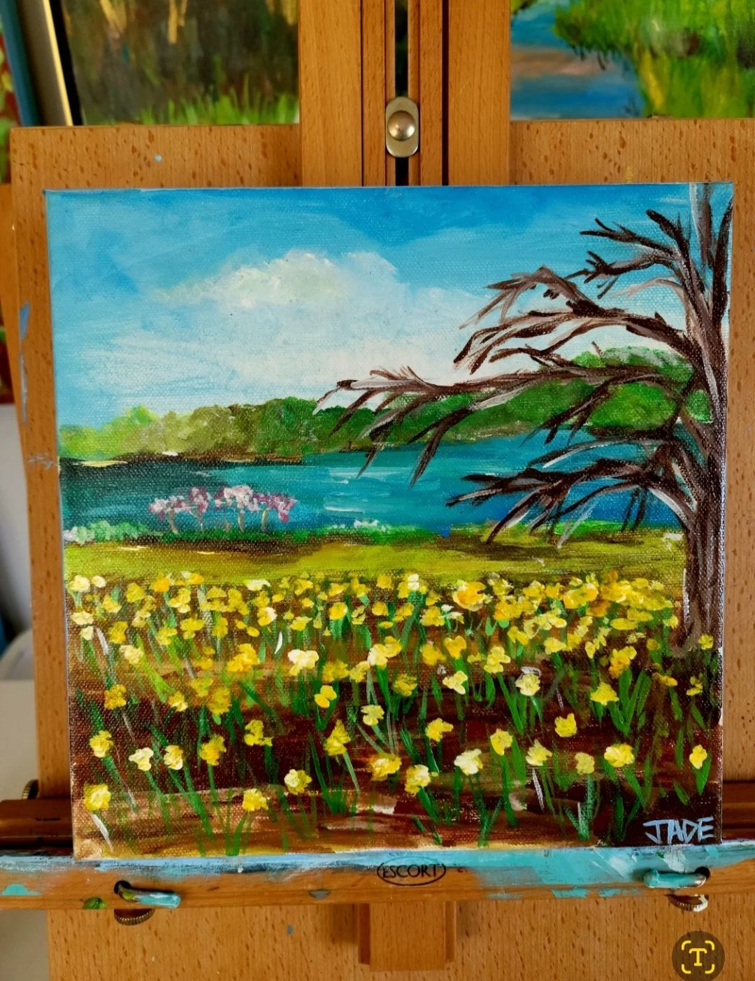 Inspired by the field of daffodils in springtime at Overlook Lake in Callaway Gardens. Painted en plein air at onsite at Callaway capturing the beauty of the changing season in spring.